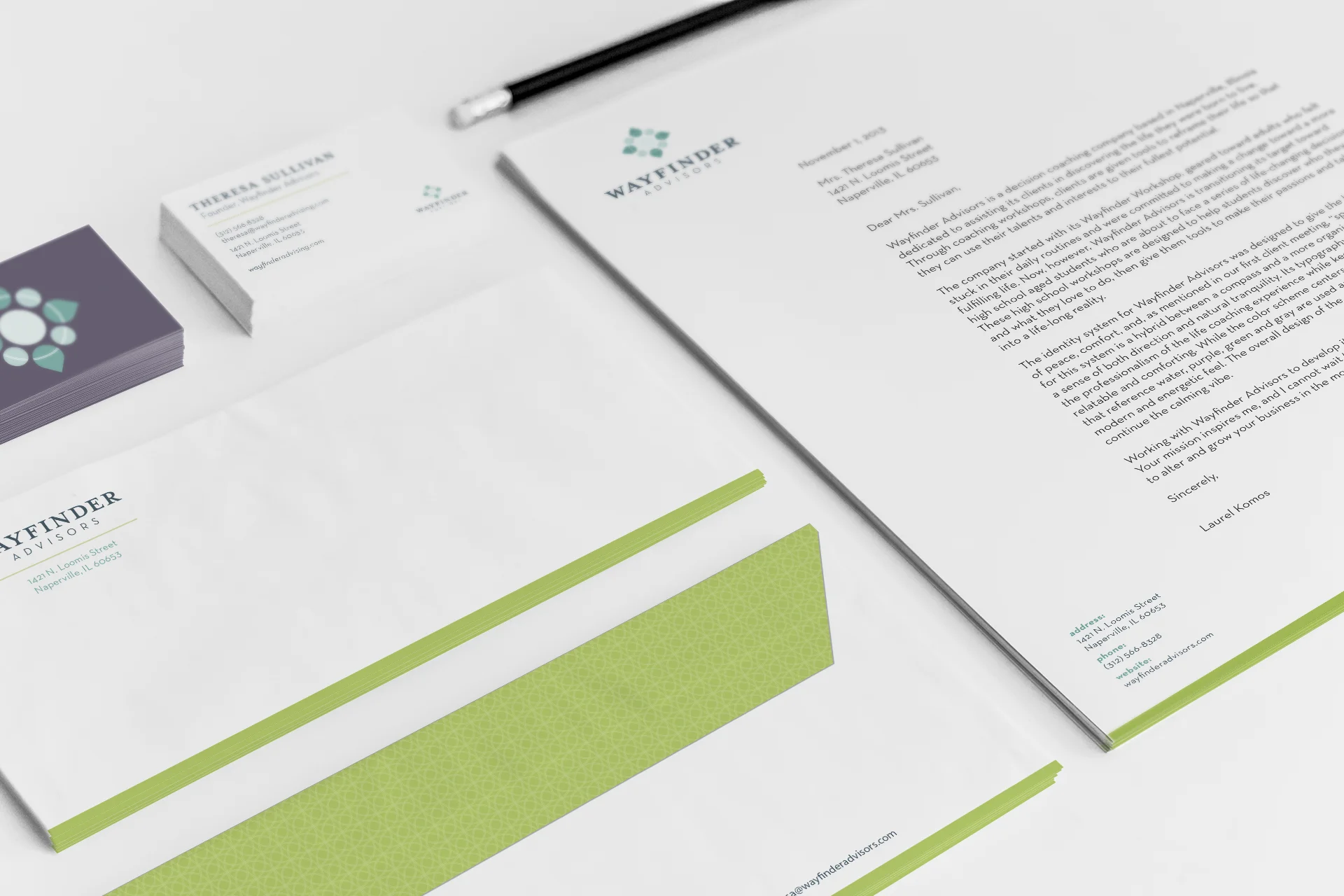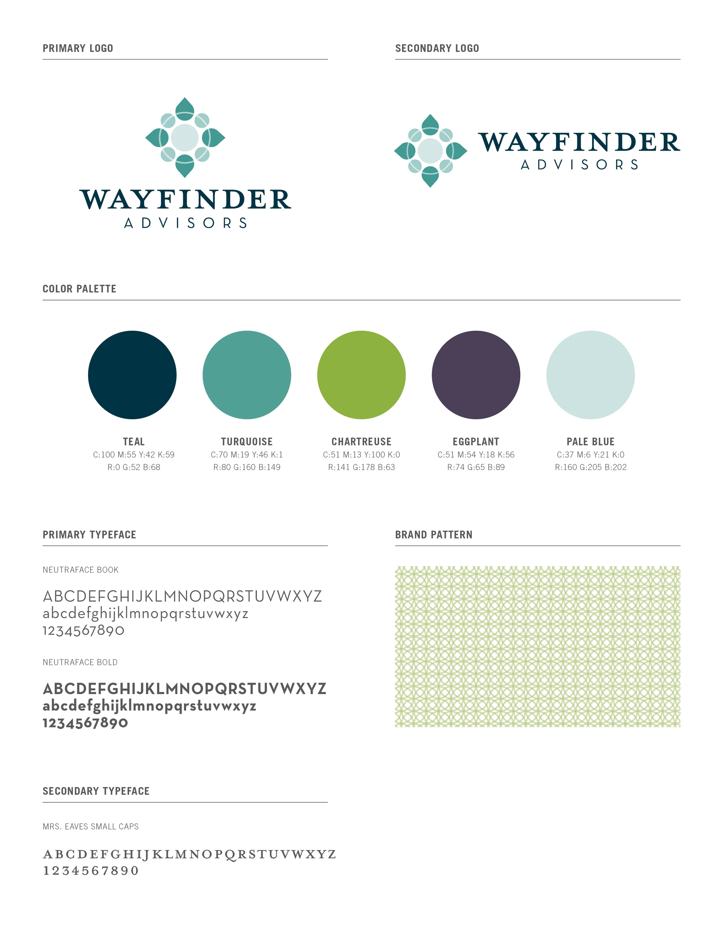 I partnered with Theresa Sullivan, founder of Wayfinder Advisors, to work on an identity system for her startup life coaching business. After starting as a life coach to redirect dissatisfied adults toward a happier career, Theresa is in the process of shifting her business to focus on helping high school students “discover who they were born to be."